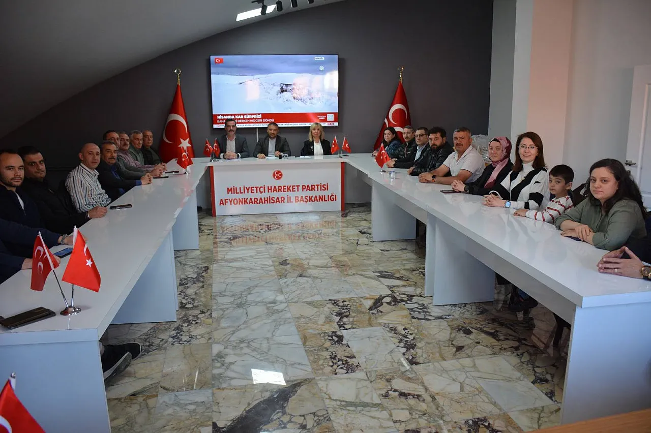 Toplantıya; MHP Afyonkarahisar İl Başkanı Ahmet Kahveci, KAÇEP’ten Sorumlu İl Başkan Yardımcısı Av. Nesrin Çelikbilek, MHP Merkez İlçe Başkanı İbrahim Danaoğlu, il ve merkez ilçe yönetim kurulu üyeleri katıldı.