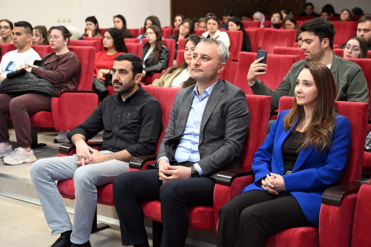 Prof. Dr. Sabri Bektöre Konferans Salonunda gerçekleştirilen konferansa; İİBF Dekanı Prof. Dr. Gökhan Demirtaş, Dekan Yardımcıları Dr. Öğretim Üyesi Ali Balkı, Dr. Öğretim Üyesi Hale Fulya Kaya ile birlikte öğretim elemanları ve öğrenciler katıldı.
