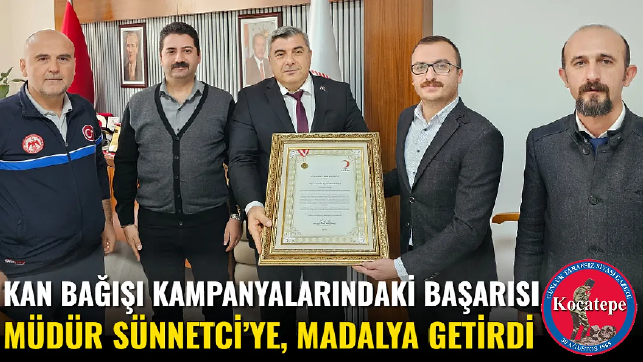 Kan Bağışı Kampanyalarındaki Başarısı Müdür Sünnetci'ye, Madalya Getirdi