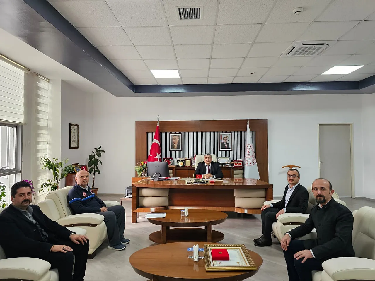 Türk Kızılay Afyonkarahisar Kan Bağış Merkezi Müdürü Dr. İsa Özcan Karakaya ve Kan Bağışçısı Kazanım Uzmanları Orhan Burak Keklik ve Musa Kıymalıoğlu, Afyonkarahisar İl Milli Eğitim Müdürü Miraç Sünnetci’yi makamında ziyaret etti.