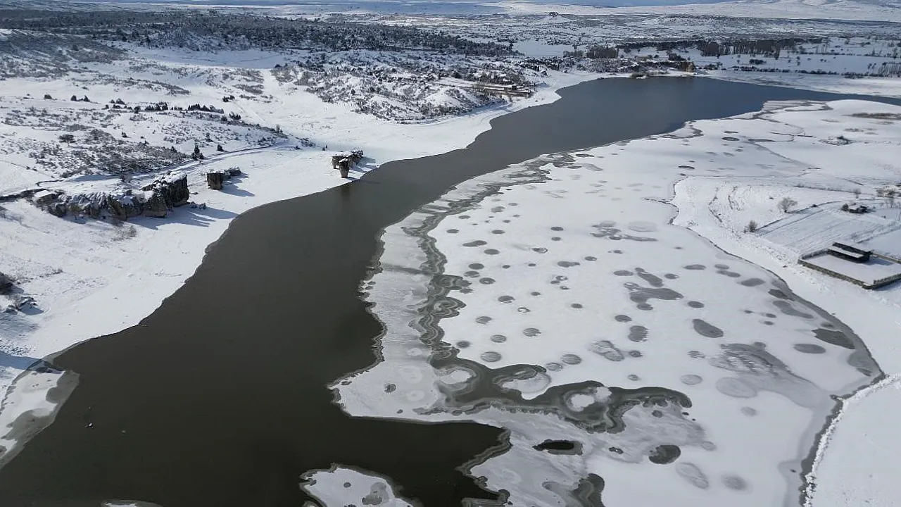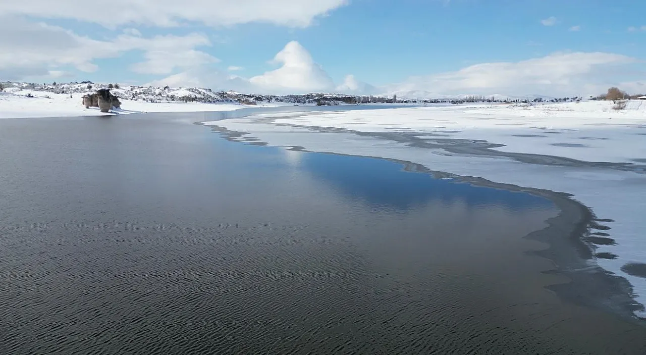Tarihi yaklaşık 3000 bin yıl öncesine dayanan Frig Vadisi'ndeki Emre Gölü dondu. İhsaniye ilçesinde yağan karın ardından hava sıcaklıklarını sıfırın altında eksi 7 derecelere kadar düşmesi sonrası göl dondu. Donan göl yanı başındaki Frigler'den kalma eserler ile kartpostallık manzaralar açığa çıkardı.