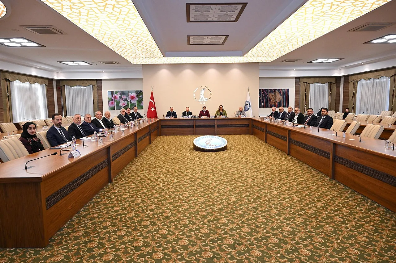 Afyon Kocatepe Üniversitesi (AKÜ) Danışma Kurulunun 9. toplantısı, AKÜ Senato Salonunda gerçekleştirildi. Toplantıya Afyonkarahisar Valisi Doç. Dr. Kübra Güran Yiğitbaşı, Afyonkarahisar Belediye Başkanı Burcu Köksal, AKÜ Rektörü Prof. Dr. Mehmet Karakaş, AKÜ Rektör Yardımcıları Prof. Dr. Şuayip Özdemir, Prof. Dr. Murat Peker, Zafer TEKNOPARK A.Ş. Genel Müdürü Prof. Dr. Tuğrul Kandemir, AKÜ Kalite Koordinatörü Doç. Dr. Ali Avan, AKÜ Genel Sekreteri Hasan Düzgün, İl Genel Meclisi Başkanı Mehmet Siper, Afyonkarahisar Ticaret ve Sanayi Odası (ATSO) Yönetim Kurulu Başkanı Hüsnü Serteser, Afyonkarahisar Ticaret Borsası (ATB) Yönetim Kurulu Başkanı Mehmet Mühsürler, Müstakil Sanayici ve İşadamları Derneği (MÜSİAD) Afyonkarahisar Şube Başkanı Ercan İşlek, Organize Sanayi Bölgesi (OSB) Başkanı Bekir Yeşilay, Afyonkarahisar Sanayicileri ve İş Adamları Derneği (AFSİAD) Yönetim Kurulu Başkanı Kadir Sayın, İş İnsanları Adnan Demirel, Remzi Özcan, Yücel Albay, İbrahim Alimoğlu, Mustafa Özer, Süleyman Kırlıoğlu, Öğrenci Temsilcisi Emine Harmancı, Teknoloji Yarışmaları Koordinatörü Dr. Öğretim Üyesi Ahmet Kaysal, Koordinatör Yardımcıları Öğr. Gör. Fatih Mazlum ve Arş. Gör. İbrahim Çelik ile birlikte TEKNOFEST’in 2025 yarışmalarında finallere kalan ve derece elde eden Kocatepe Roket Takımı, İNİTRAL Takımı, KTT TrainedYol Takımı, ELEKTRON Takımı, Robilsa Takımı, Renowo AI Takımı, AKÜMOBİL Takımı, AKU SHIELD Takımı, MR SİNA Takımı, Kocatepe Afet, Area 51 takımlarının akademik danışmanları ve takım üyeleri katıldı.
