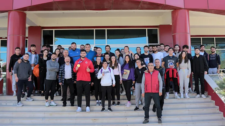 mağlup ederek Dünya Şampiyonu olan Spor Bilimleri Fakültesi (SBF) Öğrencisi, Milli Güreşçi Fatih Bozkurt’u tebrik etti