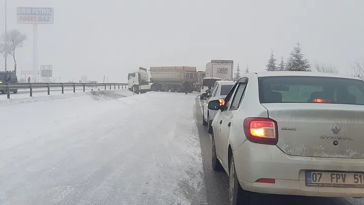 Olumsuz hava şartlarının hüküm sürdüğü Afyonkarahisar’da gizli buzlanmadan dolayı kayan bir tır karayolunu yaklaşık 20 dakika ulaşıma kapattı.