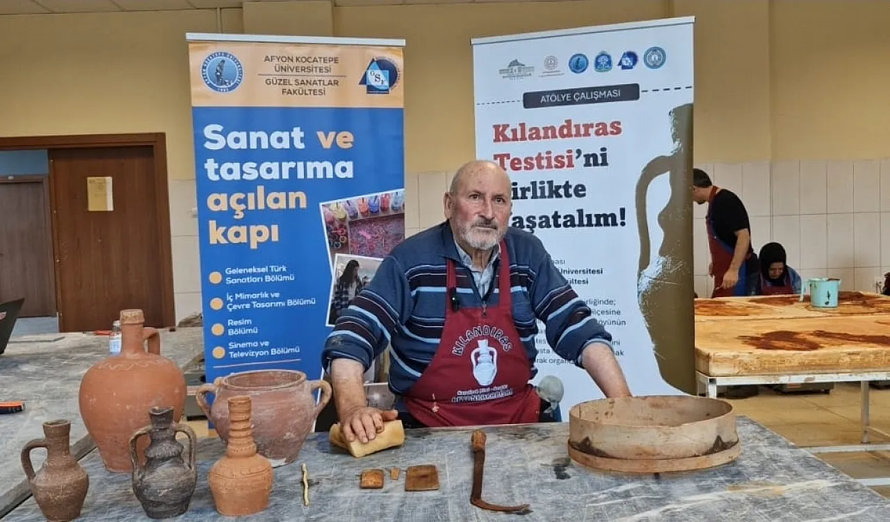 Arş. Grv. Dr. Kamuran Ak, atölye çalışması hakkında bilgi vererek bizlerle birlikte “Çömlekçilik diğer geleneksel zanaatlarımızda de olduğu gibi usta-çırak ilişkisinin çok güçlü olduğu, öğrenmenin uzun yıllar aldığı bir zanaatımızdır. Afyonkarahisar'da geçmişte Bolvadin ve Sandıklı'da üretim yapan çömlekçi atölyelerin varlığını biliyoruz. Ne yazık ki günümüzde aktif üretim yapan atölye kalmamıştır. Karadirek-Kılandıras testisi ile ilgili Ali KAVAK ustamızdan aldığımız bilgiler ve bizlerin eğitimci tecrübeleri birleşerek kültürel mirasımızı yaşatmak ve gelecek nesillere aktarmak adına atılan bu adımın devamının gelmesi gerektiğini düşünüyorum. Dediğim gibi, usta-çırak ilişkisi ile var olan zanaatlarımızı devam ettirmek zaman gerektiren bir süreçtir. Çömlekçi tornasında çamura şekil vermede önemli unsur olan sabrın, Kılandıras testisini tekrar yaşatma çabası içinde önemli olduğunu unutmamız gerekmektedir.” ifadelerini kullandı.