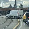 Eskişehir'de kırmızı ışıkta beklemek yerine tramvay yolunun kenarındaki banketin üstünden geçip dönüş yapan panelvan araç görenleri hayrete düşürdü.