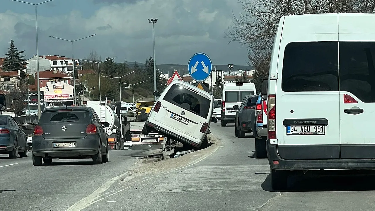 Olay, Eskişehir çevreyolu Esentepe dönüş varyantında meydana geldi. Edinilen bilgilere göre, 26 AAG 471 plakalı hafif ticari araç, seyir halindeyken Prof. Dr. Orhan Oğuz altgeçidi girişinde henüz bilinmeyen bir sebeple yol ayrımında bulunan bariyerlere çarptı. Çarpmanın etkisiyle araç, bariyerlerin üzerine çıkarak askıda kaldı.