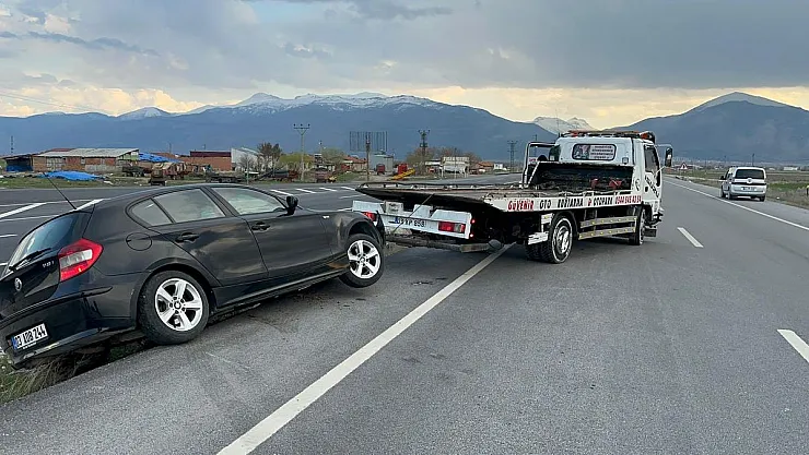 Afyonkarahisar’da bir anda önüne çıkan köpeğe çarpmamak için manevra yapan sürücünün kullandığı otomobil kontrolden çıkarak orta refüje girdi.