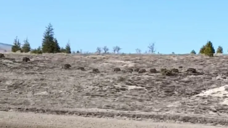Yaklaşık 15 domuzdan oluşan sürünün adeta düz bir hat üzerinde ilerliyormuş gibi hareket etmesi ise dikkatlerden kaçmadı.