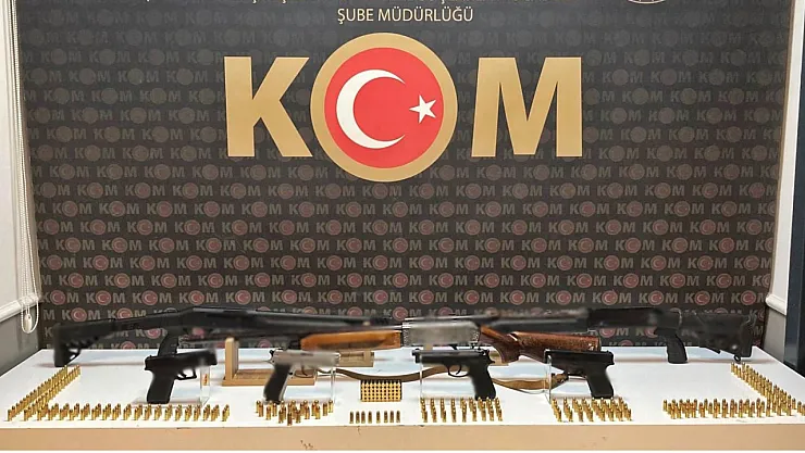Belirlenen adreslerde yapılan aramalarda 4 tabanca, 4 şarjör, 3 av tüfeği ile 330 adet 9x19 çapında fişek ele geçirildi.
