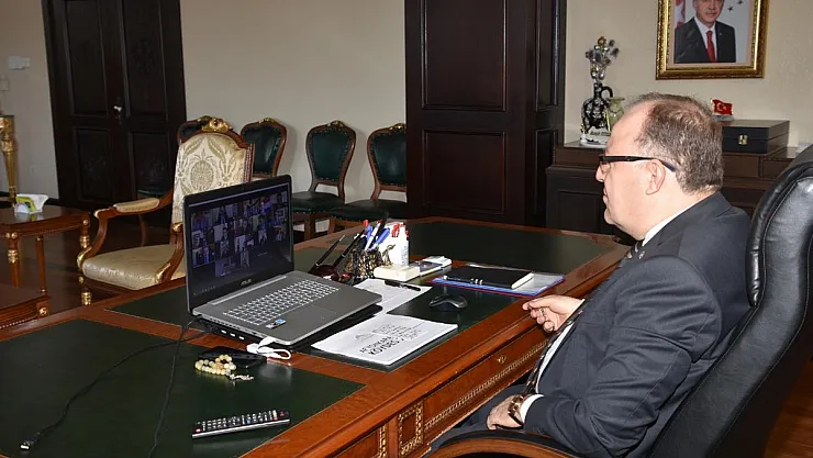 Vali Mustafa Tutulmaz koronavirüs tedbirleri çerçevesinde Kaymakamlar, İl Özel İdaresi Genel Sekreteri Murat Toy, İl Genel Meclisi Üyeleri ile video konferans yöntemiyle KÖYDES toplantısında görüştü. Toplantıda mevsimlik işçilerin durumu, köylerin alt yapıları, ilçelerde yapılan yatırımlar ve alınan Koronavisüs tedbirleri görüşüldü.