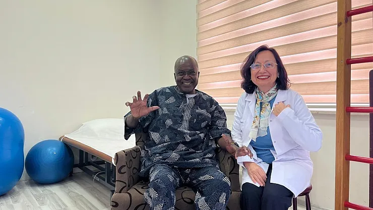Hasta hakkında konuşan Eskişehir Fizyomer Terapia Fizik Tedavi ve Rehabilitasyon Tıp Merkezi Tıbbi Direktörü Uzm. Dr. Türkan Tünerir, “Hastamız sağlık turizmi çalışmalarımız içerisinde, bizi tanıyan bir arkadaşımızın vasıtasıyla merkezimize tedavi olmak için geldi. Hastamız Nijerya ve Londra’nın ünlü avukatlarındandır. Özellikle belde kanal daralması ve bel fıtığı nedeniyle maalesef beş kez ameliyat olmak zorunda kalmış, bacaklarında kuvvetsizlik ve yürüme güçlüğü oluşmuş. Uyuşma ve yanma şikâyetleri ile birlikte her iki ayağında ‘düşük ayak sendromu’ gelişmiş. İstanbul’da özel bir hastanede başarılı bir cerrahi operasyon geçirmiş ancak ameliyattan sonra rehabilitasyona ihtiyaç duyulmuş. Doğal olarak, iyi bir cerrahinin ardından iyi bir rehabilitasyon yapılırsa hastalığın tedavisinde daha fazla başarı elde edilebiliyor. Hastamızı iki ay önce merkezimize davet ettik, iki aydır yoğun ve bütüncül bir tedavi programı uyguluyoruz. Sanal gerçeklik, aktif yürüme robotları ve yatak içi egzersizler şeklinde günde 3 saat tedaviler uyguladık. Bunun neticesinde ilk önce tekerlekli sandalye ile merkezimize gelen hastamız, şimdi baston desteği ile yürüyebilir hale geldi. Sağlık turizminde hastaların hem tedavilerinin iyi olması hem de kendilerini evlerindeymiş gibi hissetmeleri çok önemli. Sonuçta yabancı bir yere geliyorlar ve hem sağlıklarına kavuşmak istiyorlar hem de yabancılık çekmek istemiyorlar. Biz bütün ekibimizle, doktorlarımız, fizyoterapistlerimiz, hemşirelerimiz ve diğer personellerimizle yedi gün 24 saat hastamızın hizmetinde olduk. Şimdi kendisini memnun bir şekilde ülkesine göndereceğiz. Hastamız oradan ve diğer ülkelerden özellikle Eskişehir’e hasta göndermek istediğini bize iletti, çok memnun kalmış” diye konuştu.
