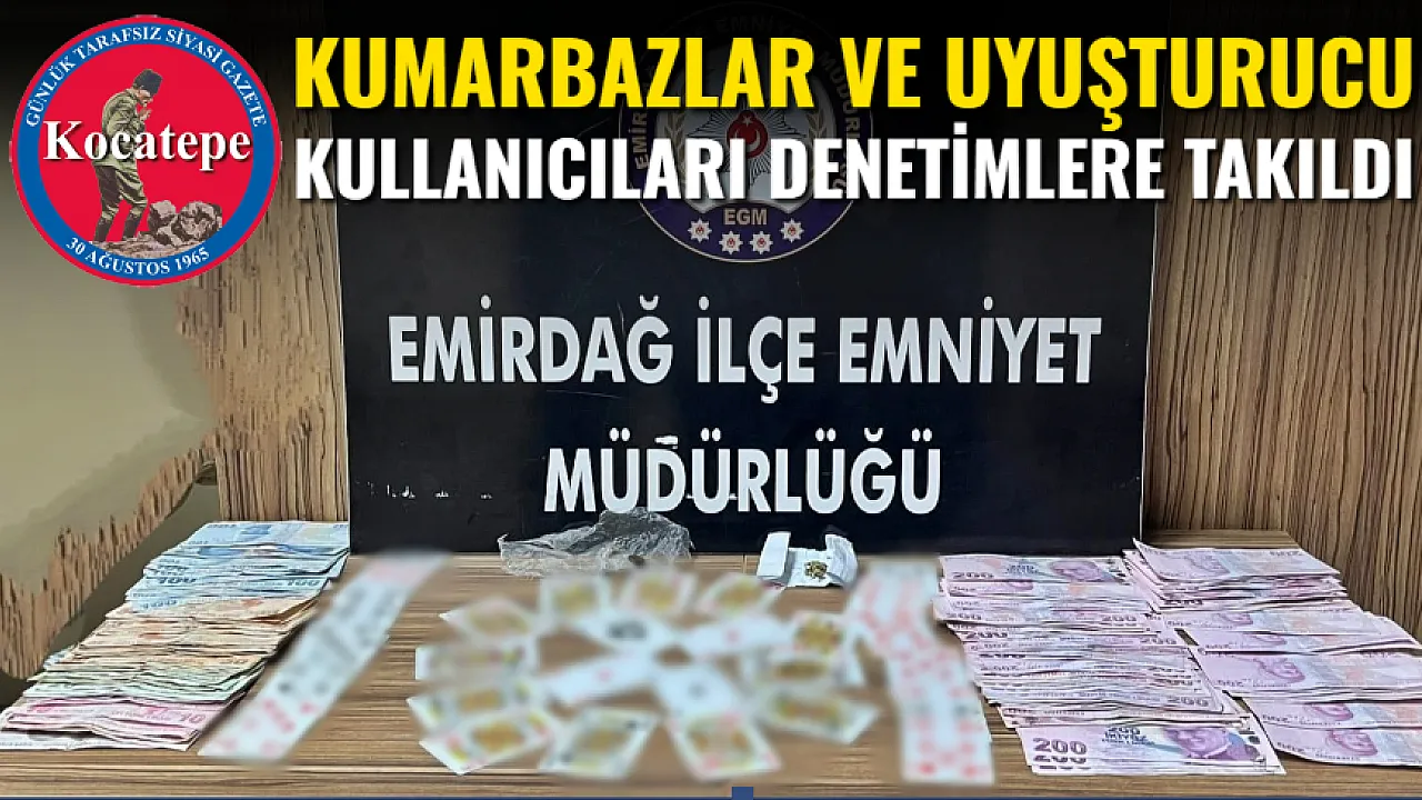 Emirdağ İlçe Emniyet Amirliği ekiplerince kumar oynatıldığı tespit edilen bir iş yerinde denetim yapılırken, denetimlerde uyuşturucu madde de ele geçirildi.