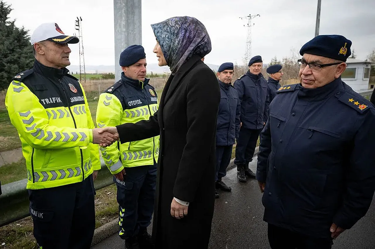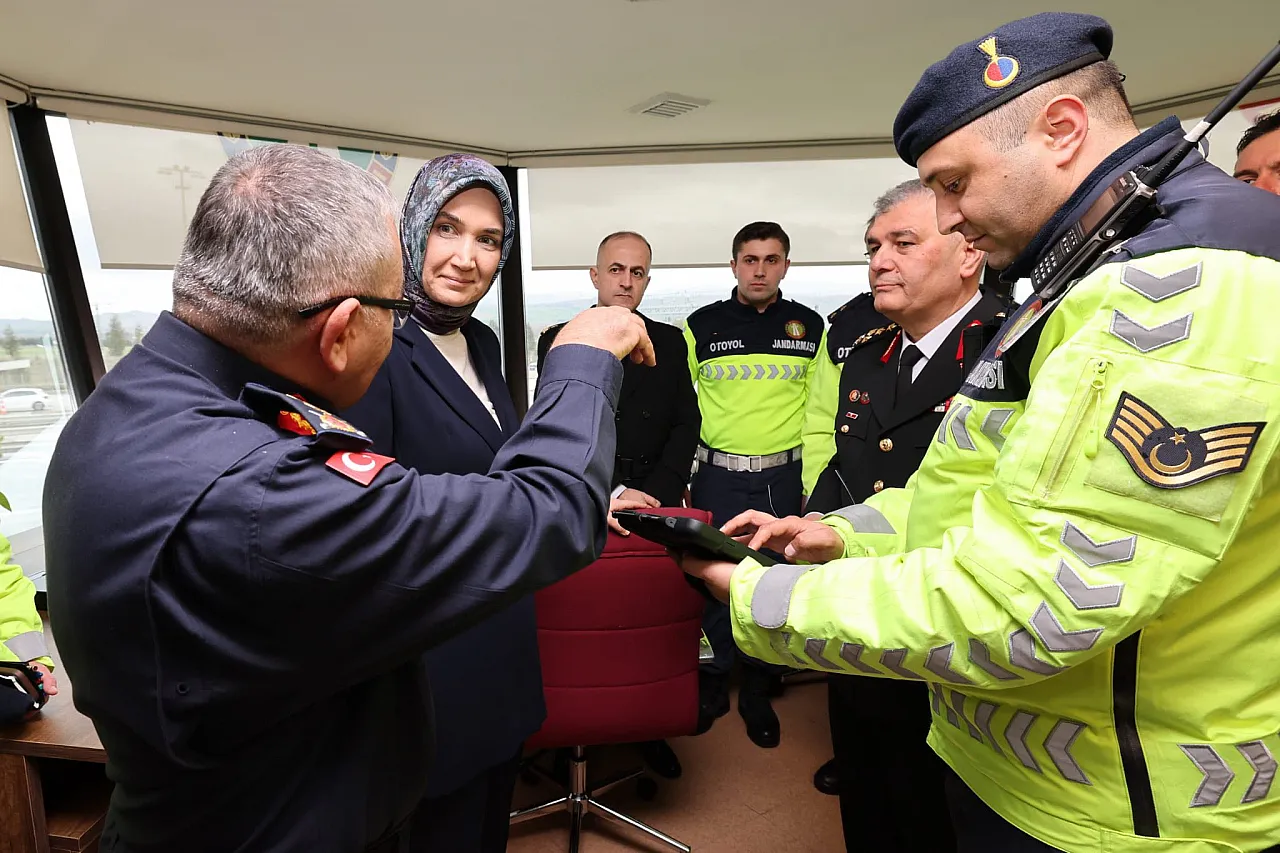İçişleri Bakan Yardımcısı Doç. Dr. Kübra Güran Yiğitbaşı, Jandarma Genel Komutanı Orgeneral Ali Çardakcı ile birlikte Jandarma denetim noktasında denetimlere iştirak ederek, sürücülere uyarılarda bulundu