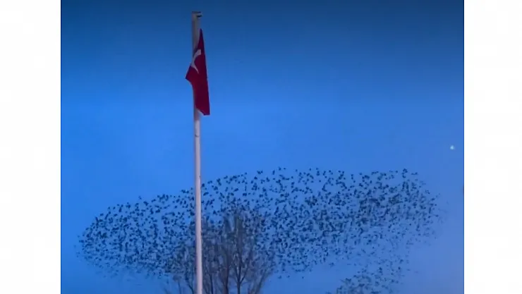 Kuşların Türk Bayrağı Çevresindeki Mest Eden Dansı Kamerada