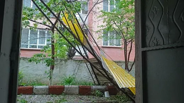 Meteoroloji 3. Bölge Müdürlüğü, dün yayımladığı ‘sarı’ uyarı koduyla, vatandaşları kuvvetli rüzgar ve fırtınaya karşı temkinli olmaları konusunda uyardı. Sabah saatlerinde kent genelinde etkisini gösteren kuvvetli rüzgar ve sağanak yağmur yağışı vatandaşlara zor anlar yaşatırken, bazı mahallelerde çevre düzenlemelerinde ve yapılarda hasarlara yol açtı. Gökmeydan Mahallesi Sümbüller sokak üzerinde bulunan bir evin bahçesi de fırtınadan etkilendi. Şiddetli rüzgar sebebiyle binanın bahçesinde bulunan çardağın çatısının uçtuğu, oturma alanının ise yerle bir olduğu görüldü. Demir direkler ile desteklenen yapıda küçük çaplı maddi hasar oluşurken, şans eseri kimse yaralanmadı.