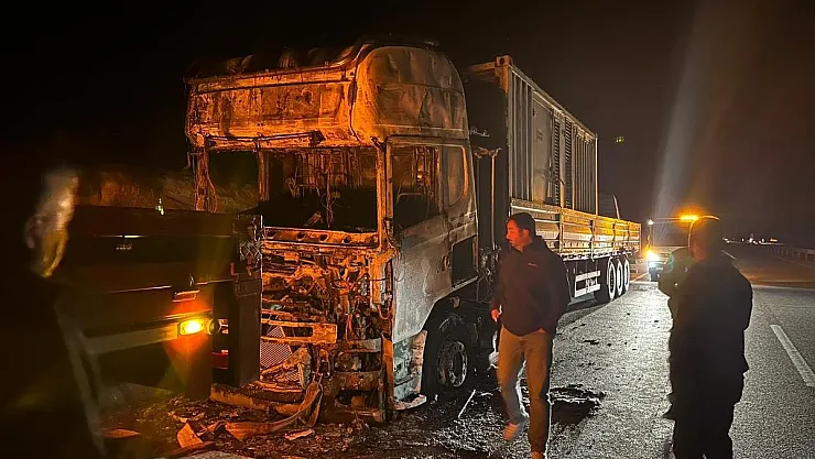 Lastiklerde başlayan yangın kısa sürede tırı sarıp hurdaya çevirdi