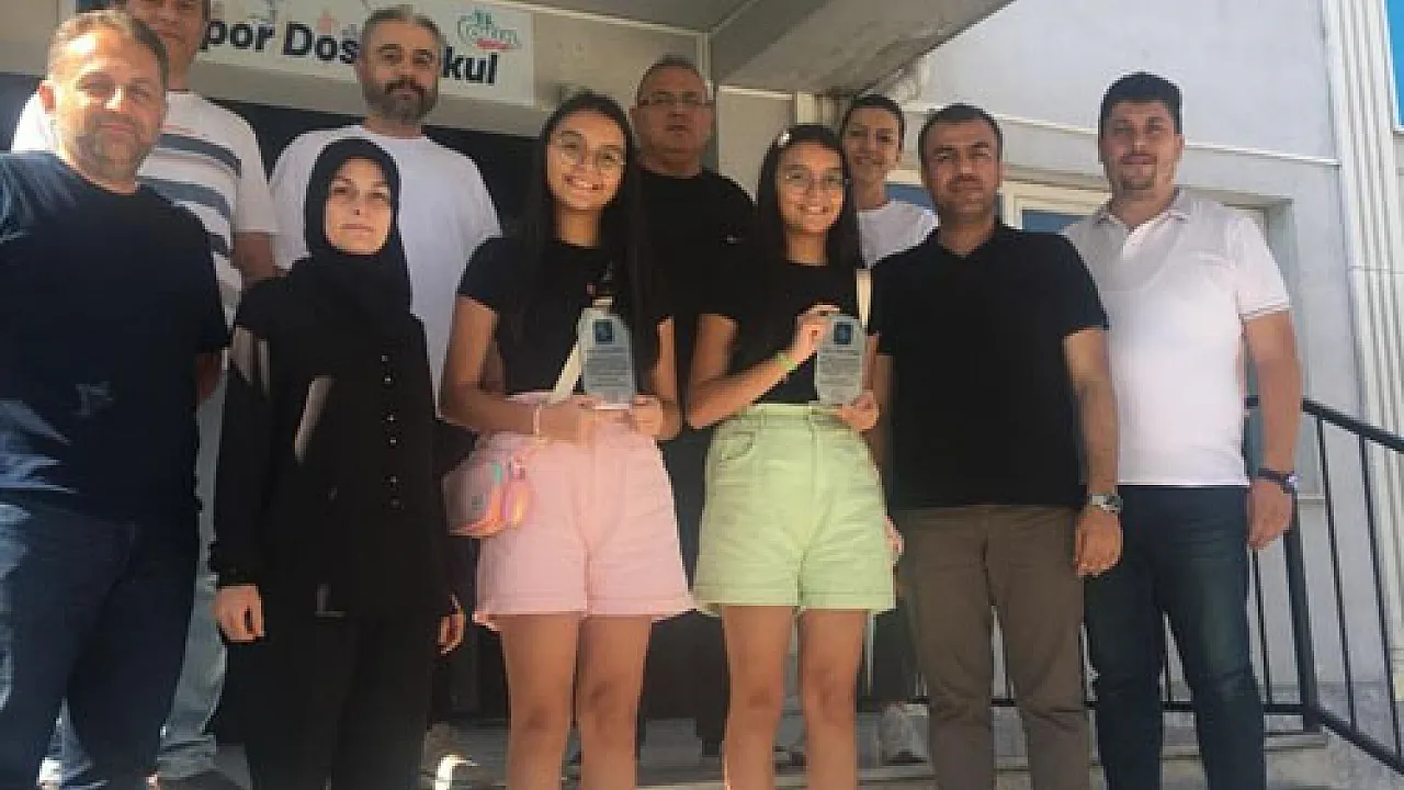 LGS’de Türkiye birincisi olan Sena Altıntuğ ve Melis Altıntuğ kardeşlere Şemsettin Karahisari Ortaokulu (ŞKOO) Müdürü Numan Topgün ve Okul Aile Birliği Başkanı Fatih Sarı tarafından ödül olarak altın verildi. Şeyda YEŞİLÇAY’ın Haberi