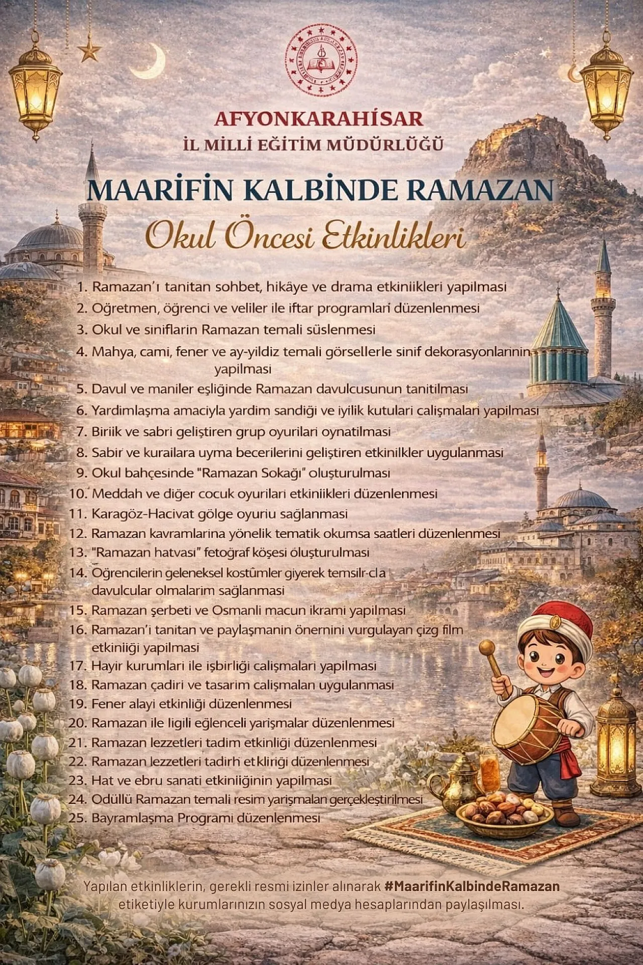 Afyonkarahisar İl Milli Eğitim Müdürlüğü tarafından 'Maarifin Kalbinde Ramazan' okul öncesi etkinlikleri belirlendi.