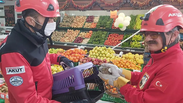 Afyonkarahisar’da bir markete giren atmaca, AKUT ekibince fileli sepetle yakalandı