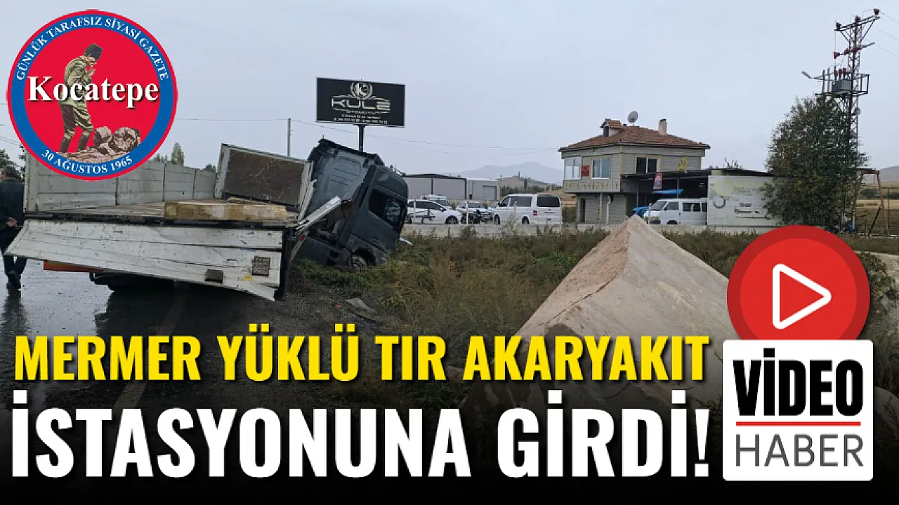 Afyonkarahisar'da tonlarca ağırlıktaki mermer yüklü tırın kayarak bir akaryakıt istasyonunun istinat duvarına çarparak durabildiği anlar saniye saniye güvenlik kameralarına yansırken, şans eseri olayda ölen ya da yaralanan olmadı.