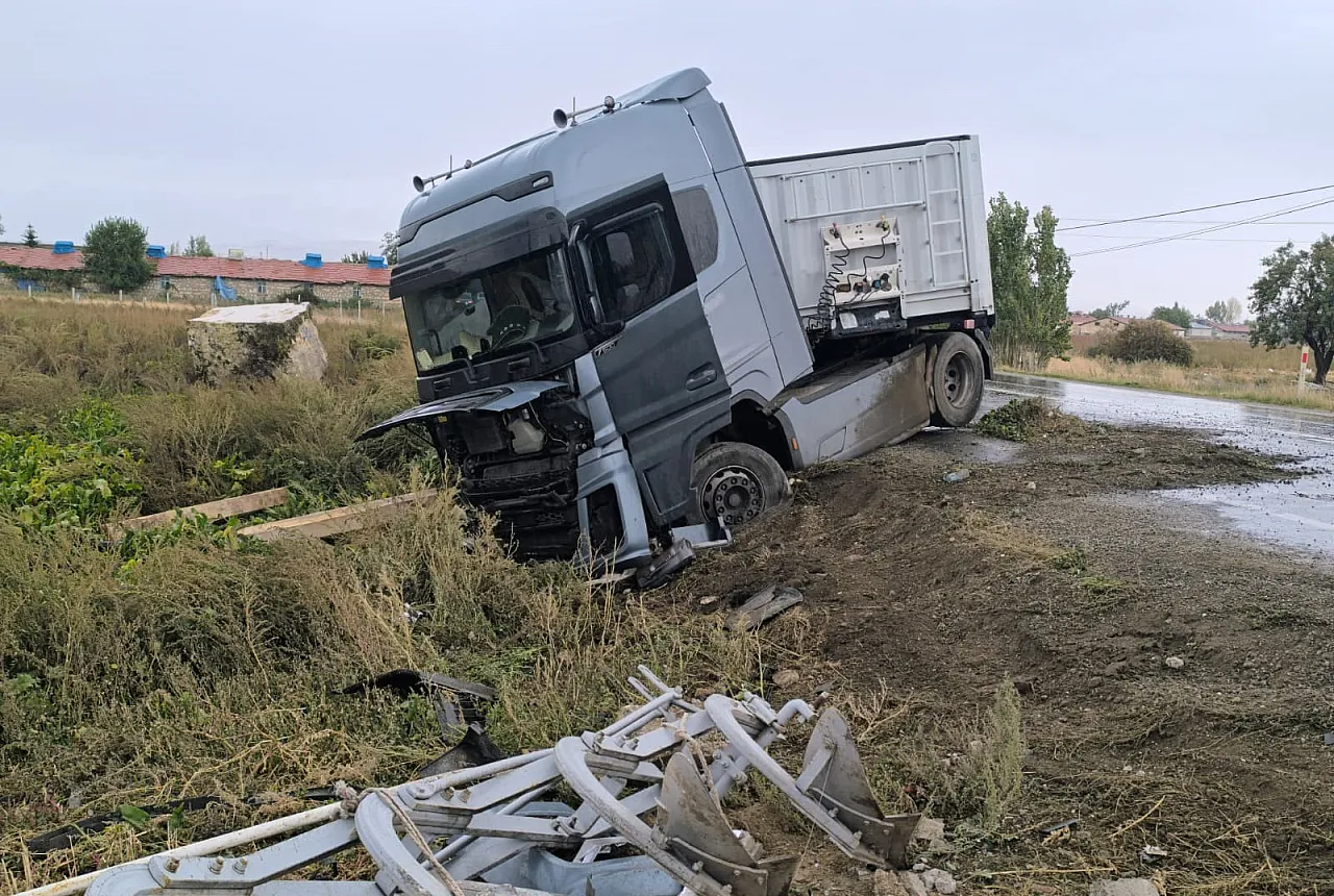 Savrulan araç yağmurundan etkisi ile bir anda kaymaya başladı. Yaklaşık 100 metre kayan tır ardından yol kenarındaki akaryakıt istasyonun istinat duvarına çarparak durabildi.