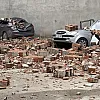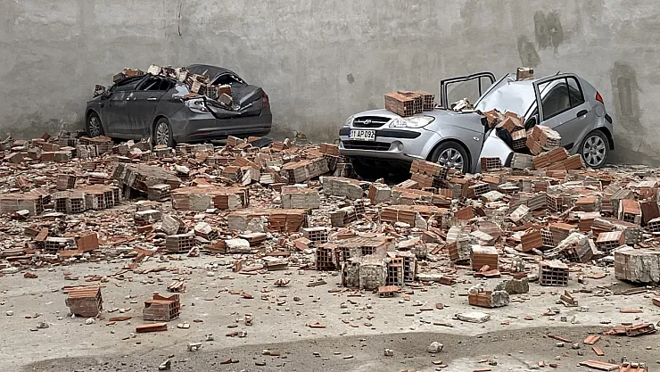 Metruk Binanın Çatı Duvarı Otoparka Devrildi, 6 Araçta Hasar Oluştu