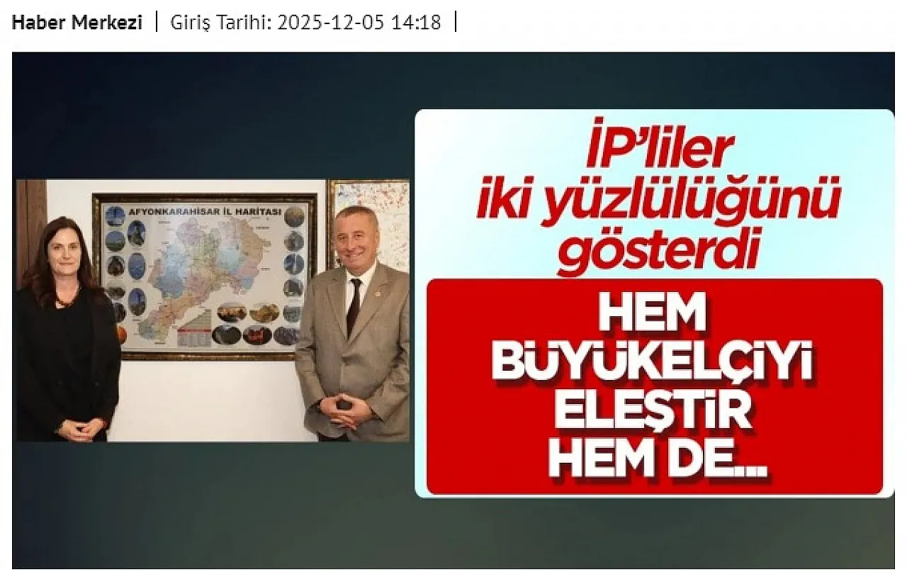 “ABD büyükelçisinin küstah açıklamalarını iktidara mal eden İYİ Parti Genel Başkanı Müsavat Dervişoğlu’nun açıklamaları gündemdeki yerini korurken İYİ Parti Genel Başkan yardımcısı ve Afyonkarahisar Milletvekili Hakan Şeref Olgun ABD Büyükelçiliği Siyasi İşler Birim Şefi ve Çalışma Ataşesi Kimberly Royston ile görüştü.