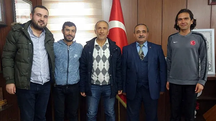 İscehisar Kalkınma Kooperatifi Yönetim Kurulu Başkanı Yüksel Çakmak, Afyonkarahisarlı Milli Atletler Süleyman Büyükbezgin ve Nuri Kömür ile birlikte Belediye Başkanı Ahmet Şahin’i makamında ziyaret etti
