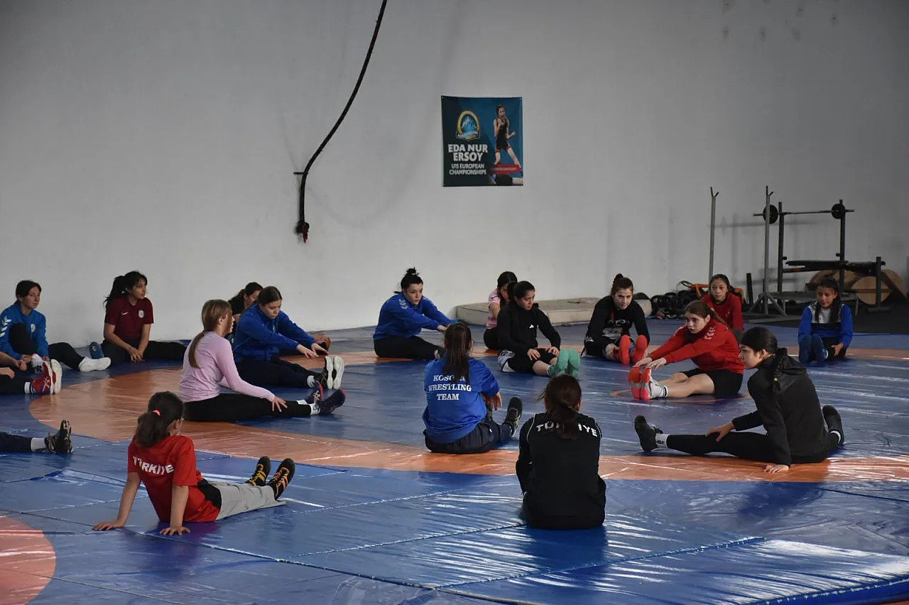 Kosova ve Kuzey Makedonya'dan gelen toplam 16 milli güreşçi ve 2 antrenör, Taşoluk Spor Salonu'nda düzenlenen hazırlık kampında bir araya geldi.