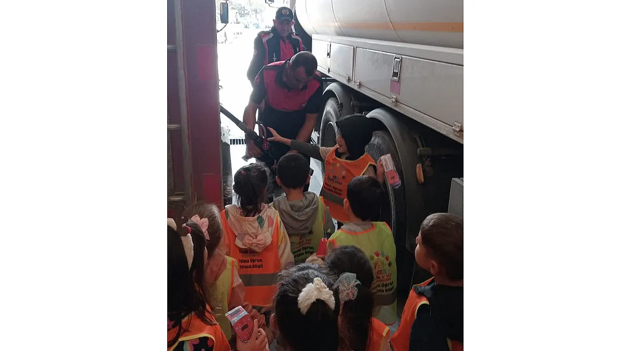 Etkinlik çerçevesinde minik öğrenciler, itfaiye personeli eşliğinde yangın güvenliği konusunda bilgilendirildi. İtfaiye erleri, yangın sırasında yapılması gereken temel adımları ve yangın söndürme ekipmanlarının nasıl kullanılacağını uygulamalı olarak öğrencilere anlattı.