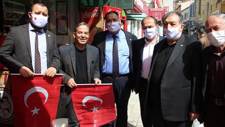 Türk Bayrağı dağıtımında esnaf ve vatandaşla sohbet eden Mısırloğlu şu ifadelere yer verdi: “Şanlı Türk Bayrağımızı Afyonkarahisar merkez ve tüm ilçelerimizde tüm hızıyla dağıtmaya devam ediyoruz. Genel Başkanımız Meral Akşener’in selamlarını ileterek onun gönderdiği şanlı Türk Bayrağımızı dağıtıyoruz. Esnaflarımızın çektiği sıkıntılara ortak olup, çözüm noktasında İYİ Parti olarak yanlarında olduğumuzu belirtmek istiyorum. Her yerde İYİ Parti’ye büyük bir ilgi var, sağ olun var olun. Bir ve beraber olma günüdür. Hepimiz şanlı bayrağımızın altında toplanmalıyız. Karanlık günleri birlikte aşarak aydınlık günlere kavuşacağız.” >> Ş. Cüneyt BURSALIOĞLU’nun Haberi