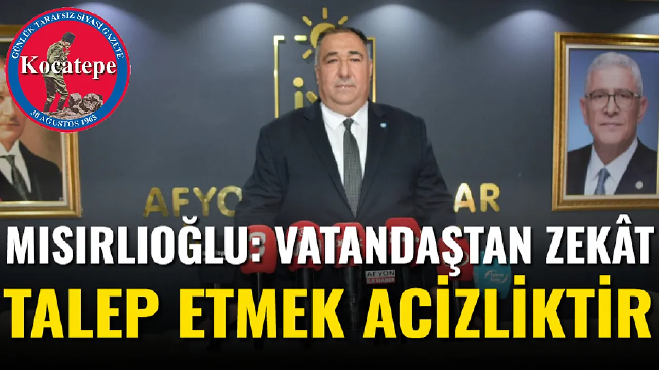 İYİ Parti Afyonkarahisar İl Başkanı Muhammet Mısırlıloğlu, İstanbul Valiliği'nce hazırlanan 'Gönülden Bir Öğün' adlı proje ile vatandaştan zekat talep edilmesinin acizlik olduğu görüşünü açıkladı.