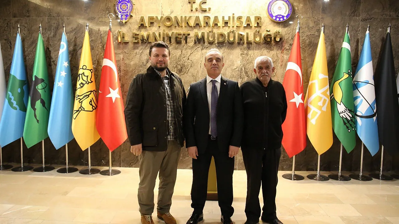Afyonkarahisar İl Emniyet Müdürü Ahmet Birtan Erol, TÜRSAB Dumlupınar Bölge Başkanı Bilal Şenel ve iş insanı Bekir Erten'i makamında kabul etti.