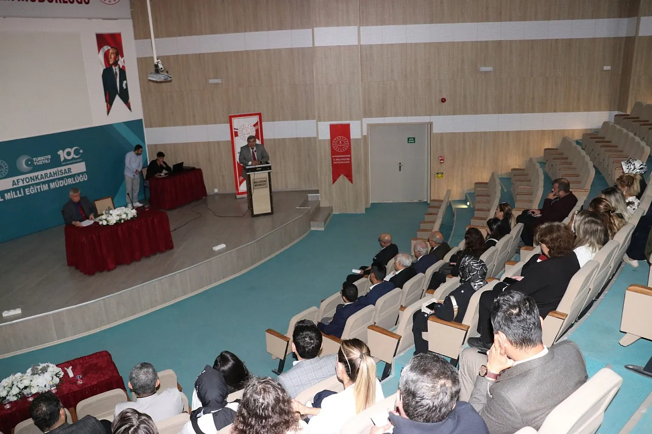 Afyonkarahisar İl Milli Eğitim Müdürlüğü Konferans Salonu’nda İl Milli Eğitim Müdürü Miraç Sünnetci, Müdür Yardımcısı Mevlüt Çınar ve il genelindeki özel okul, kurum idarecilerinin katıldıkları Değerlendirme Toplantısı düzenlendi.