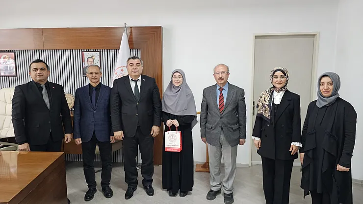 Afyonkarahisar Kız Anadolu İmam Hatip Lisesi (Fen ve Sosyal Bilimler Proje Okulu) 11’inci Sınıf öğrencisi Ayşe Nur Özen, okul idarecilerimiz ve öğretmenleri, Şube Müdürleri Abdullah Kaya ve Hayati Duman’ın eşliğinde Afyonkarahisar İl Milli Eğitim Müdürü Miraç Sünnetci’yi ziyaret etti.