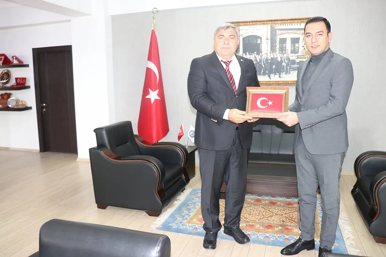 Afyonkarahisar İl Milli Eğitim Müdürü Miraç Sünnetci, Dinar Kaymakamı Hasan Uğuz'u makamında ziyaret etti