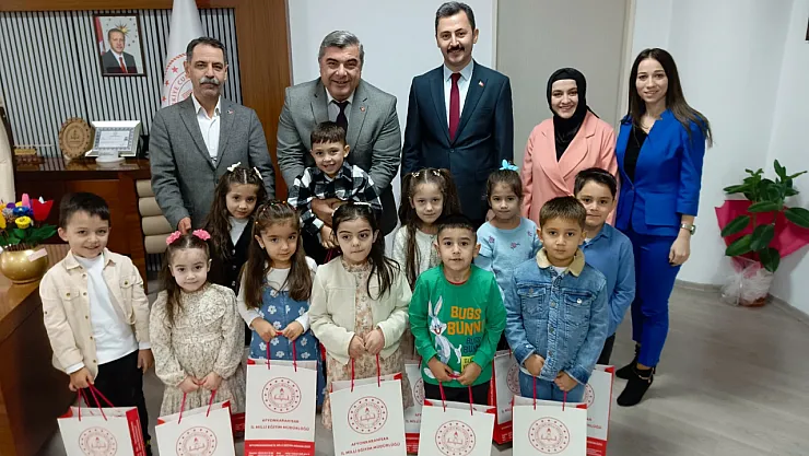 Nurettin Karaman İlkokulu Anasınıfı öğrencileri, okul idarecileri ve öğretmenleri ile birlikte İl Milli Eğitim Müdürü Miraç Sünnetci’yi makamında ziyaret etti. Ziyarette, , İl Milli Eğitim Şube Müdürü İbrahim Erdem Gülcü’ de hazır bulundu.