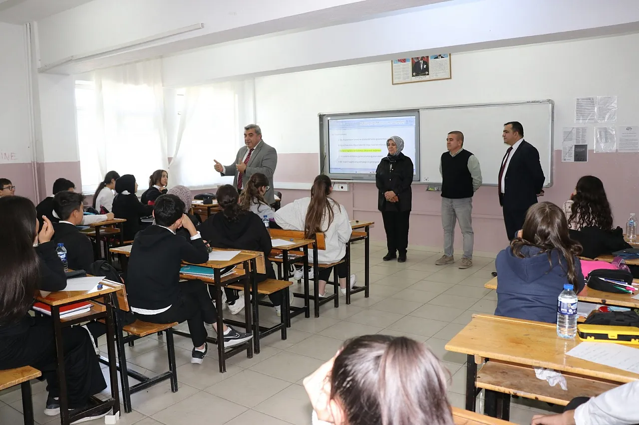 Afyonkarahisar Emir Murat Özdilek Turizm Mesleki ve Teknik Anadolu Lisesi'ni ziyaret eden İl Milli Eğitim Müdürü Miraç Sünnetci, Şube Müdürü Hayati Duman ile birlikte sınıfları ziyaret ederek öğrencilere hedeflerini sordu.