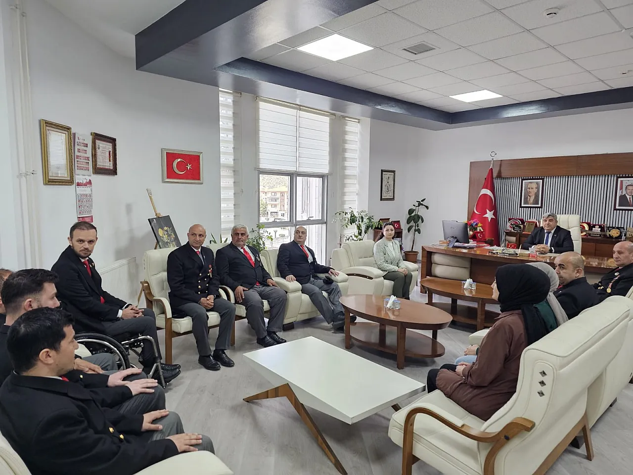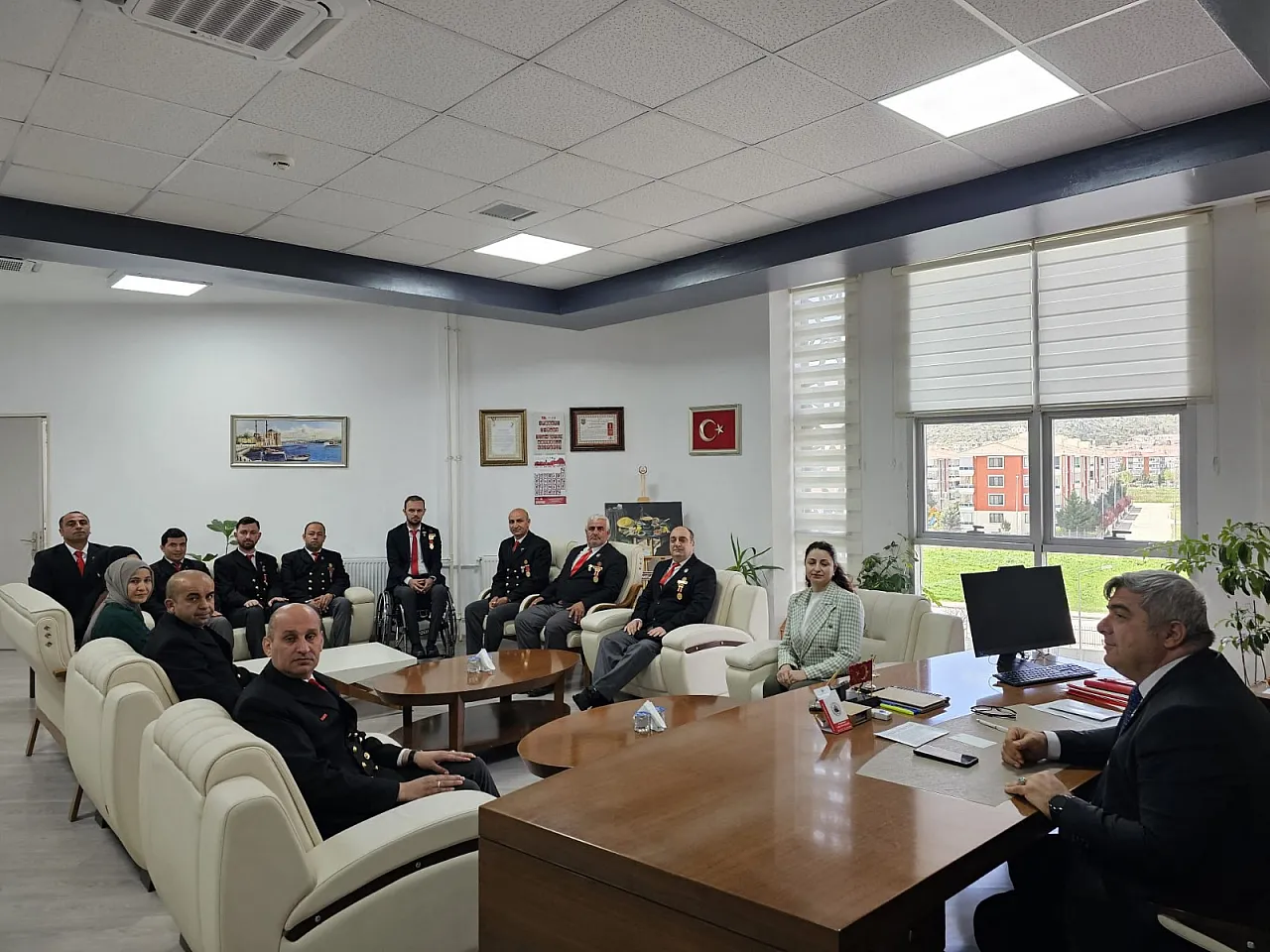 Türkiye Harp Malulü Gaziler Şehit Dul ve Yetimleri Derneği Afyonkarahisar Şube Başkanı Malul Gazi İsmail Kumartaşlı ve beraberindeki şehit yakınları ve gaziler Afyonkarahisar İl Milli Eğitim Müdürü Miraç Sünnetci'yi ziyaret etti.