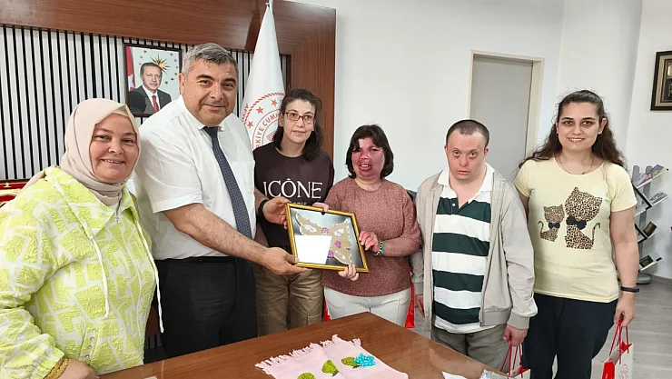 Afyonkarahisar Ağır Düzey Zihinsel Engelliler Derneği Başkanı Hatice Özkan ve özel öğrenciler, Afyonkarahisar İl Milli Eğitim Müdür Yardımcısı Mevlüt Çınar ve Şube Müdürü Ahmet Aksoy'un nezaretinde aileleriyle birlikte Afyonkarahisar İl Milli Eğitim Müdürü Miraç Sünnetci'yi ziyaret ederek geçmiş Kurban Bayramını kutladılar.