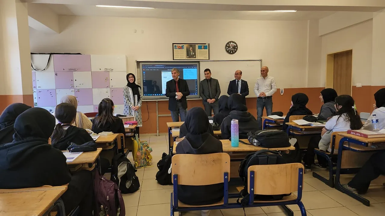 İl Milli Eğitim Müdürü Mustafa Yılmaz ve Temel Eğitim Hizmetleri Şube Müdürü Mustafa Topuz ile birlikte Ertuğrul Gazi İmam Hatip Ortaokulunu ziyaret etti.