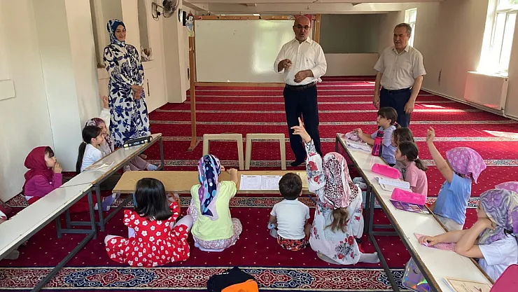 Müftü İmamoğlu ve Müftü Yardımcısı Şahiner, Örnekevler Camii ve Örnekevler Melek Hanım Kur'an Kursu ve Hacı Hüseyin Efendi Camiinde eğitim gören Yaz Kur'an Kursu öğrencilerini ziyaret ettiler.