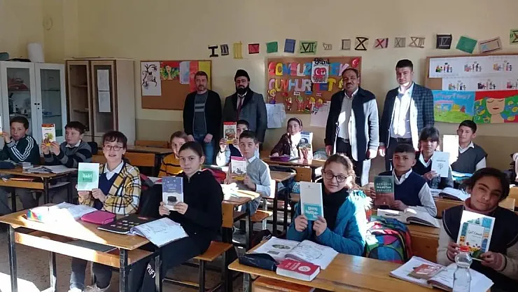 Afyonkarahisar İhsaniye İlçe Müftüsü Ömer Faruk Aslan, Ayazini Ortaokul öğrencilerine Diyanet İşleri Başkanlığının hazırladığı kitapları hediye etti.