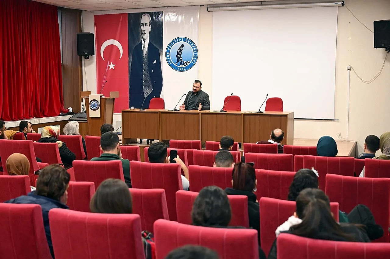 Prof. Dr. Sabri Bektöre Konferans Salonunda düzenlenen konferansa; İİBF Dekan Yardımcısı Dr. Öğretim Üyesi Hale Fulya Kaya ile birlikte akademik personel ve öğrenciler katıldı. “Mezunlar ile Kariyer Söyleşisi” etkinliğine konuk olan AKÜ mezunu ve Mars Lojistik Yurt İçi Dağıtım Kanalları (YDK) Operasyon Uzmanı Ahmet Enes Yılmazer, öğrencilere iş hayatındaki deneyimlerini, lojistik sektöründeki gelişmeleri ve kariyer planlamasında dikkat edilmesi gereken hususları paylaştı.2024 yılında Uluslararası Ticaret ve Finansman Bölümünden mezun olduğunu ve halihazırda tezli yüksek lisans eğitimine devam ettiğini belirtti.