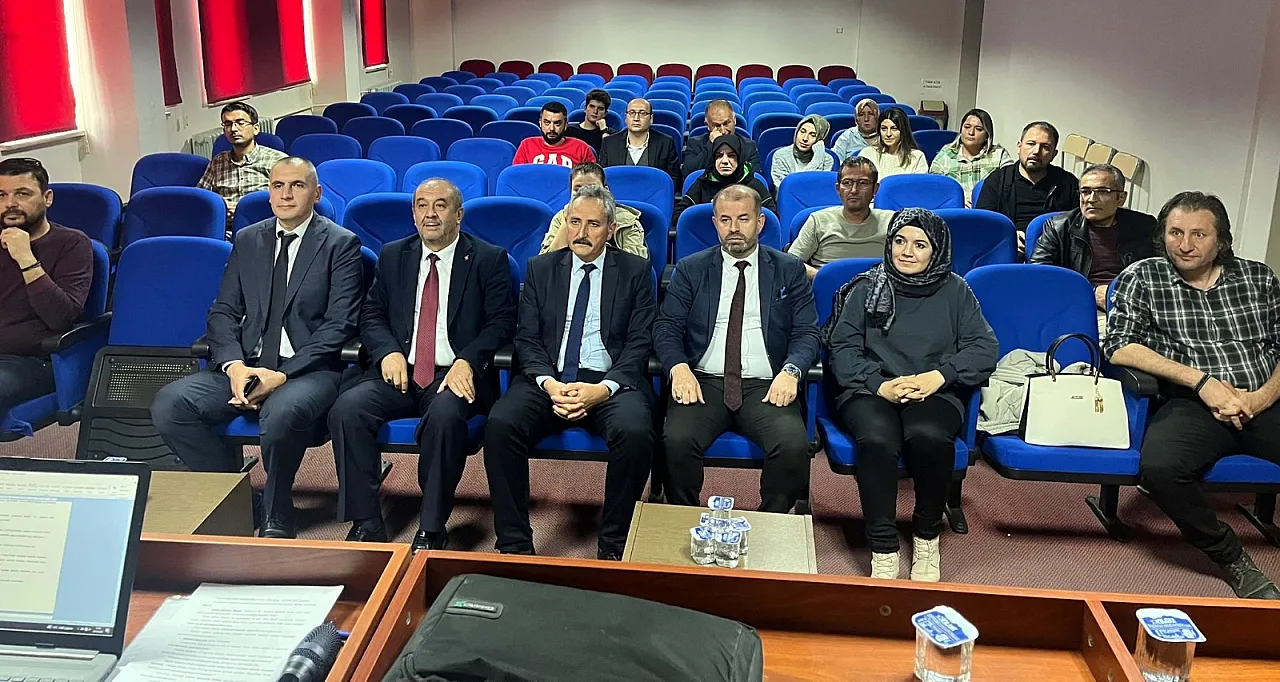 Ali Çağlar Anadolu Lisesi Konferans Salonunda İl Milli Eğitim Müdür Yardımcısı Ahmet Ataş, Şube Müdürü Hikmet Tuncer, Öğretmen Akademileri İl Koordinatörü Şube Müdürü Sami Çetinaktı, okul idareciler ve öğretmenler katılımıyla gerçekleştirilen etkinlikte Ali Çağlar Anadolu Lisesi Türk Dili ve Edebiyatı Öğretmeni İbrahim Atay geçtiğimiz aylarda kaybettiğimiz Yavuz Bülent Bakiler’in hayatını, edebi kişiliğini ve eserlerini anlattı.