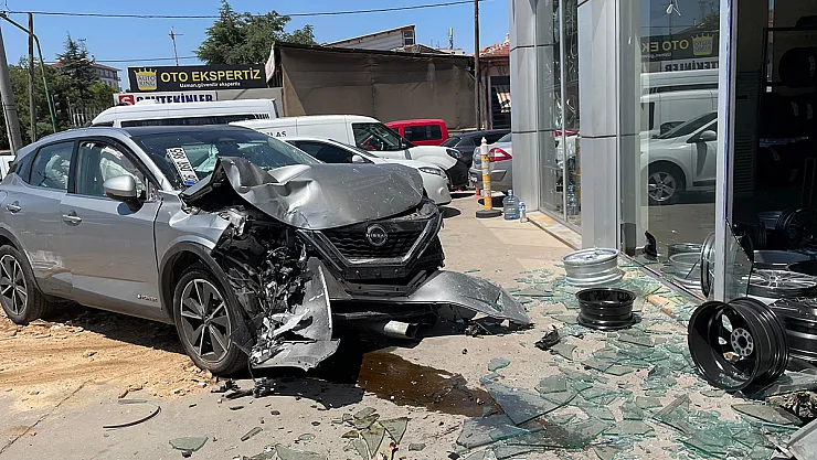 Eskişehir'de sürücünün direksiyon hakimiyetini kaybettiği araç önce otomobile, ardından bir cenaze aracına çarparak lastikçiye girdi. Çarpmanın etkisiyle lastikçide çalışan bir kadın hafif şekilde yaralandı.