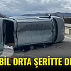 Otomobil Orta Şeritte Devrildi