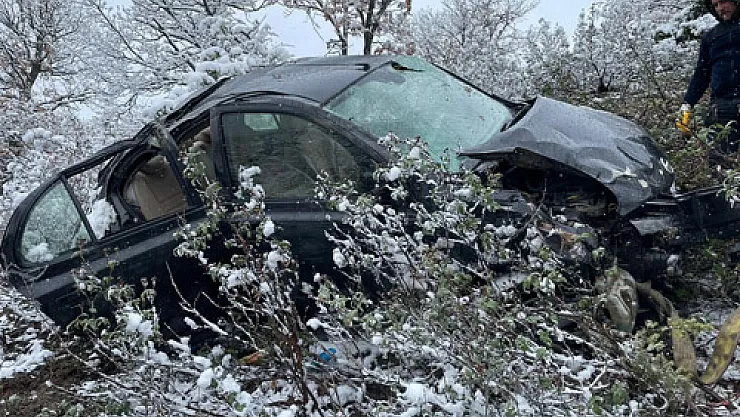 Otomobiliyle uçuruma yuvarlanan okul müdürü yaralandı