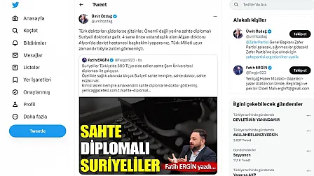 Sandıklı Devlet Hastanesi Başhekimliği yapan Afgan asıllı doktorla ilgili olarak paylaştığı twettinde Zafer Partisi Genel Başkanı Ümit Özdağ şunları söyledi: “Türk doktorları giderlerse gitsinler. Önemli değil yerine sahte diplomalı Suriyeli doktorlar gelir. 4 sene önce vatandaşlık alan Afgan doktoru Afyon’da devlet hastanesi başhekimi yaparsınız. Türk Milleti uzun zamandır böyle zulüm görmemişti.”